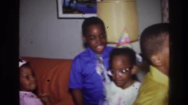 > 1976: children gather for a birthday party in the front room. HARLEM NEW YORK