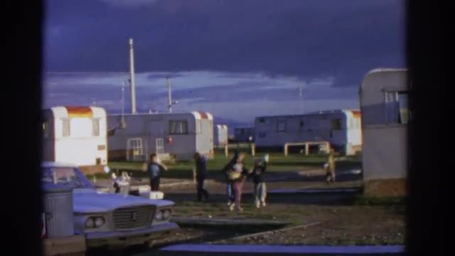 > 1963: several children walking in the vicinity of many parked caravans ZURICH SWITZERLAND