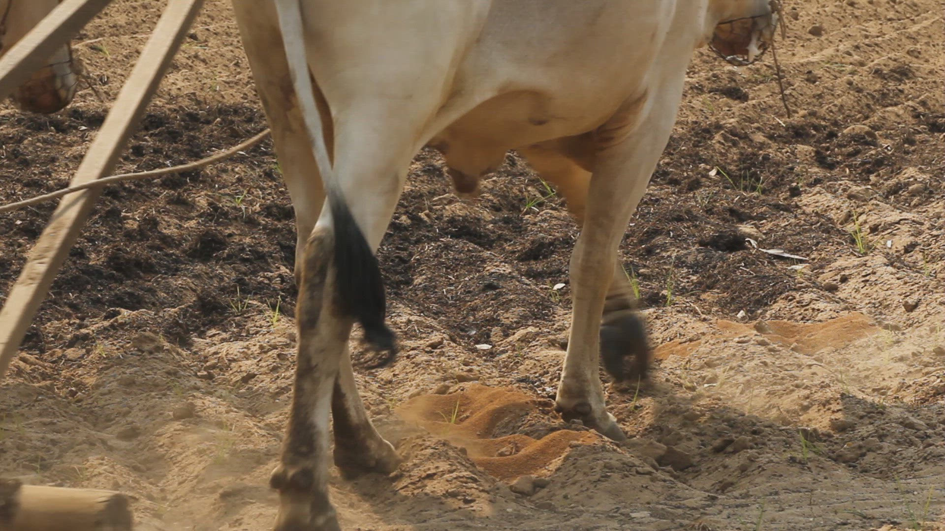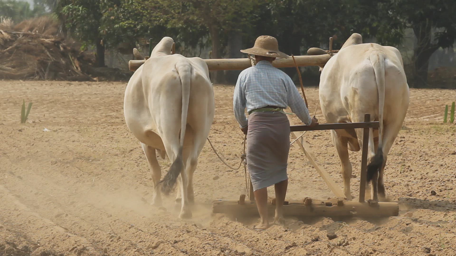 > 1962: man sets his plow to guide oxen in order to plow his field. IZMIR TURKEY