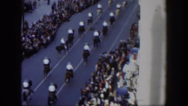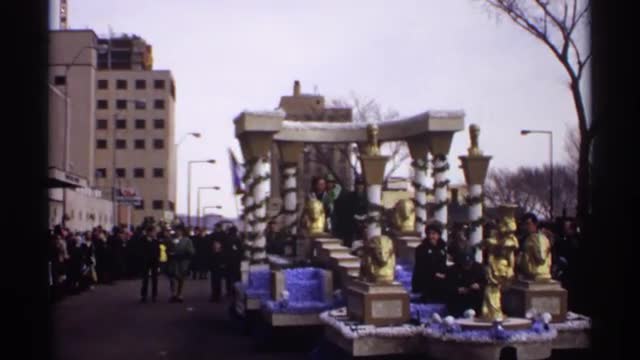 > 1966: crowd of people watching bands in a parade and other parade floats FLORIDA