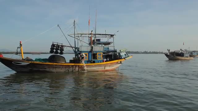 > 1938: an old man rowing his boat on a sunny day looks like he's enjoying the ride through the qu