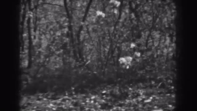 1938: a small forest with many trees having lean trunks and bushes with flowers WEST VIRGINIA