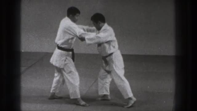 > 1971: two men demonstrate judo moves TOKYO JAPAN