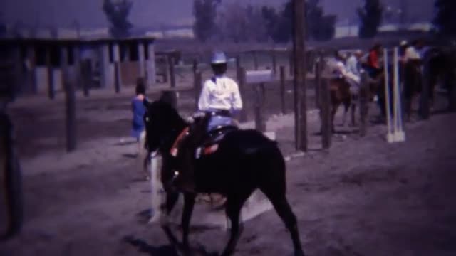 > 1957: horse riders do obstacles at a horse riding fair WHEELING OHIO