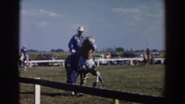 1957: cowboys riding horses at a rodeo WHEELING OHIO
