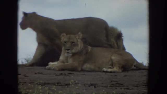 > 1974: lions relaxing out in nature. IRVINE CALIFORNIA