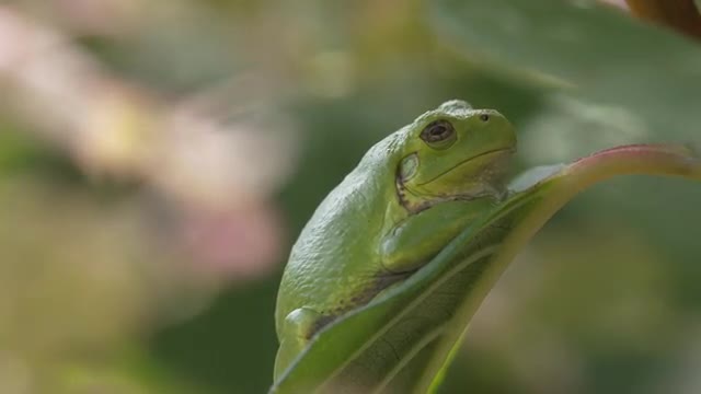 Tree frog on leaf, tight, static shot