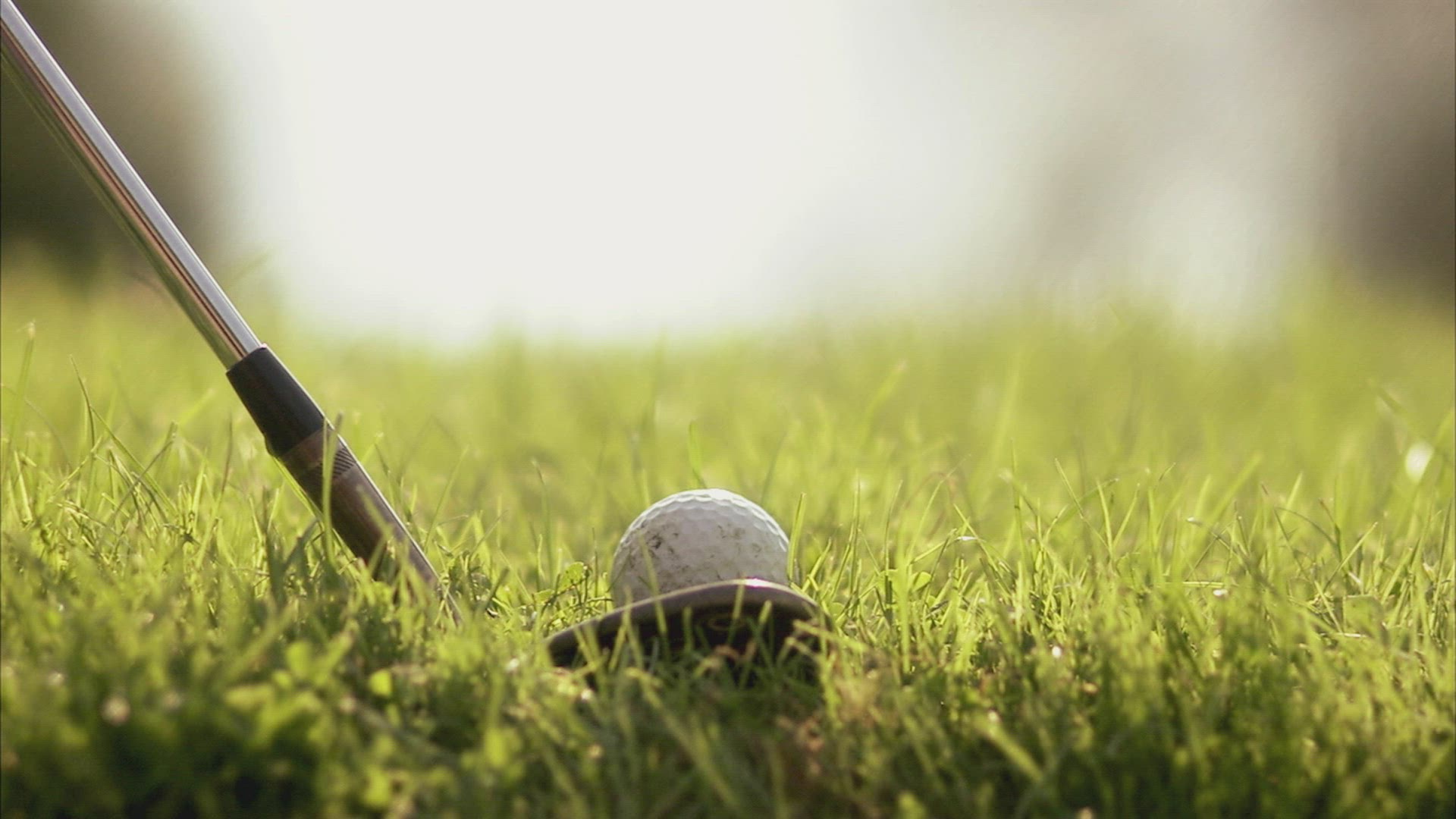 > 1961: man hitting a golf ball off of an elevated tee RIDGEFIELD, NEW-JERSEY