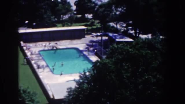 > 1958: overview shot of swimming pool and trees FRENCH LICK, INDIANA