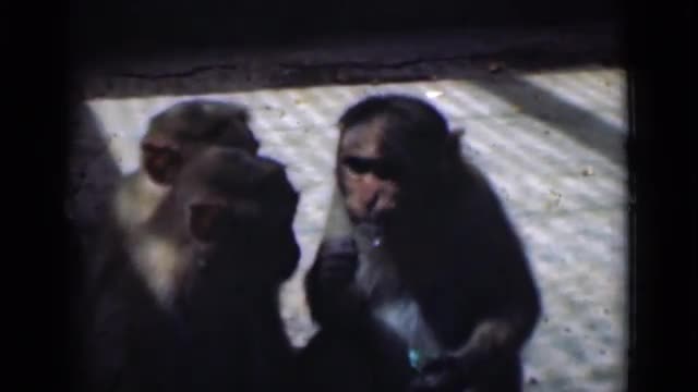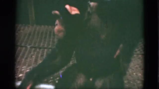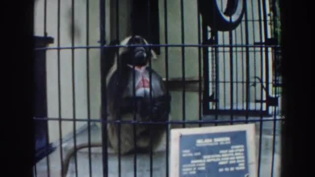 > 1961: monkey sitting inside the cage made of metal bars CALIFORNIA