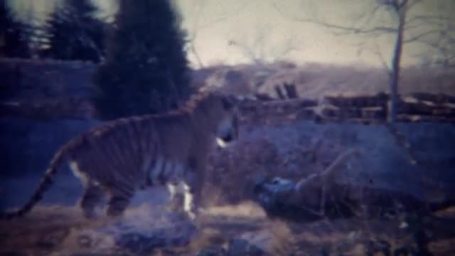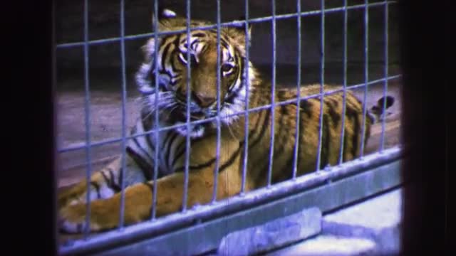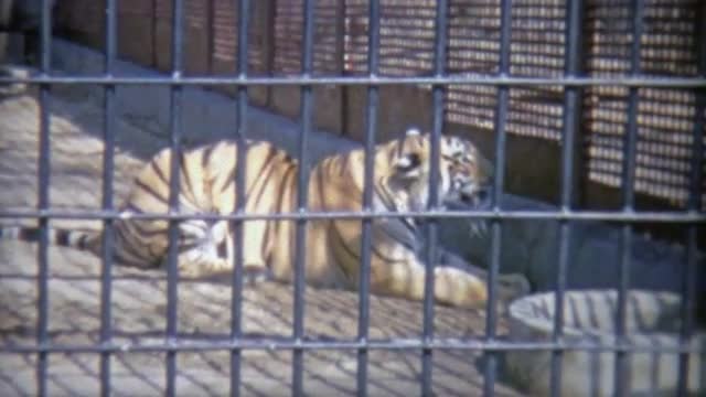 > 1961: a tiger in a caged area in a zoo BURBANK, CALIFORNIA