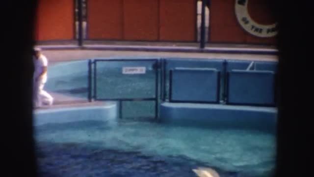 1960: large animal in an enclosed area with different colors standing tall near water MIAMI, FLORIDA