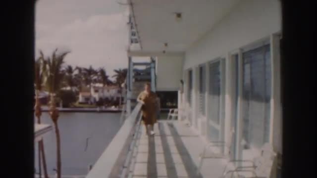 > 1960: woman standing on the balcony. MIAMI, FLORIDA