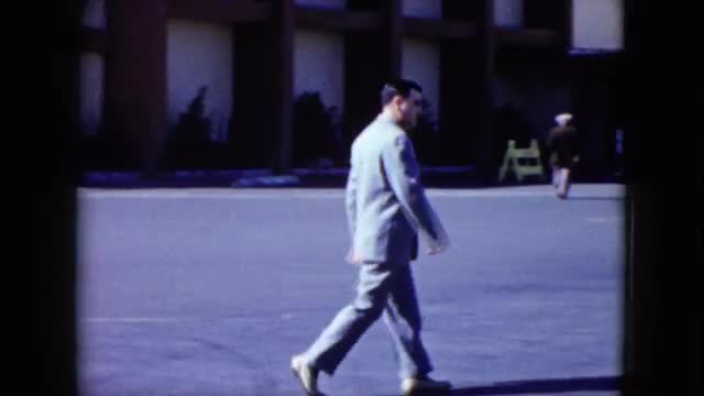 > 1959: random people walking in a parking lot. BARCELONA SPAIN
