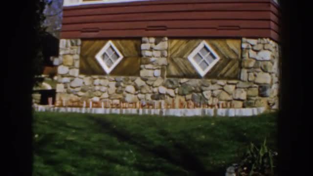 > 1959: panning of building with many different stones and bricks MICHIGAN
