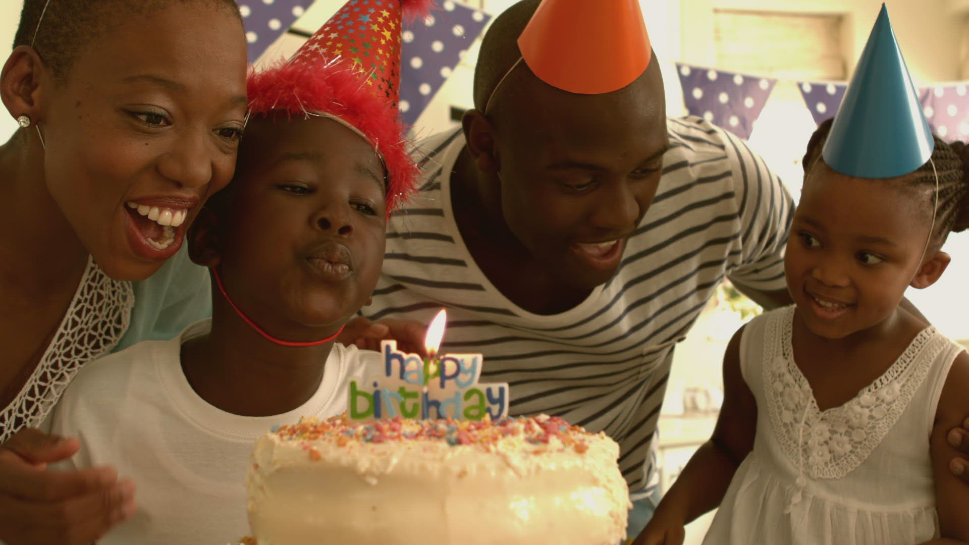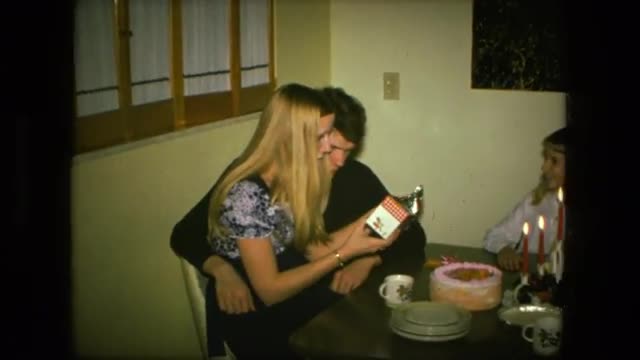 > 1959: family sitting around a table and having happy birthday being sung to them MICHIGAN