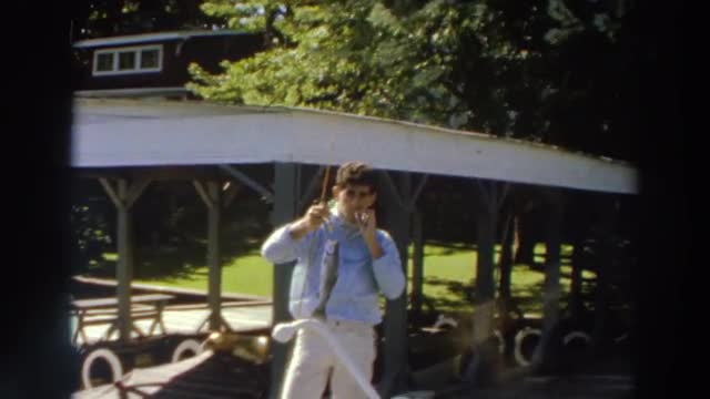 1966: a handsome young man outside, smoking a cigarette while holding up a fish MADISON WISCONSIN