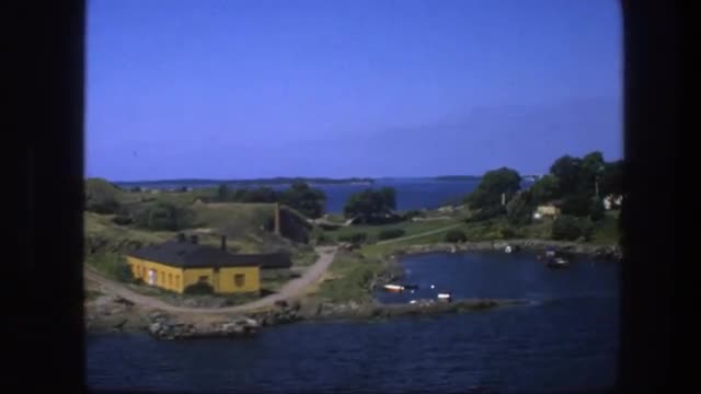 > 1975: a house next to a clear, blue lake at daytime, seen from above SWEDEN