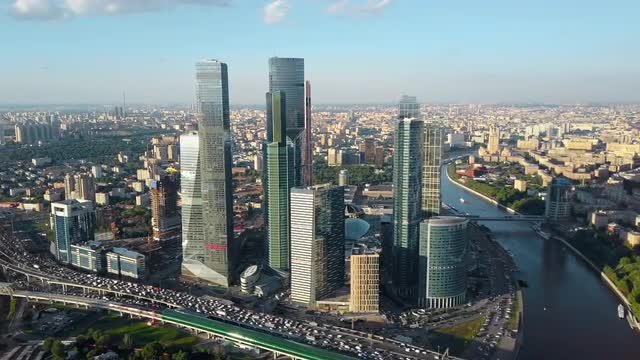 1029830 - Timelapse of clouds over Moscow. Cityscape with State University and modern skyscrapers