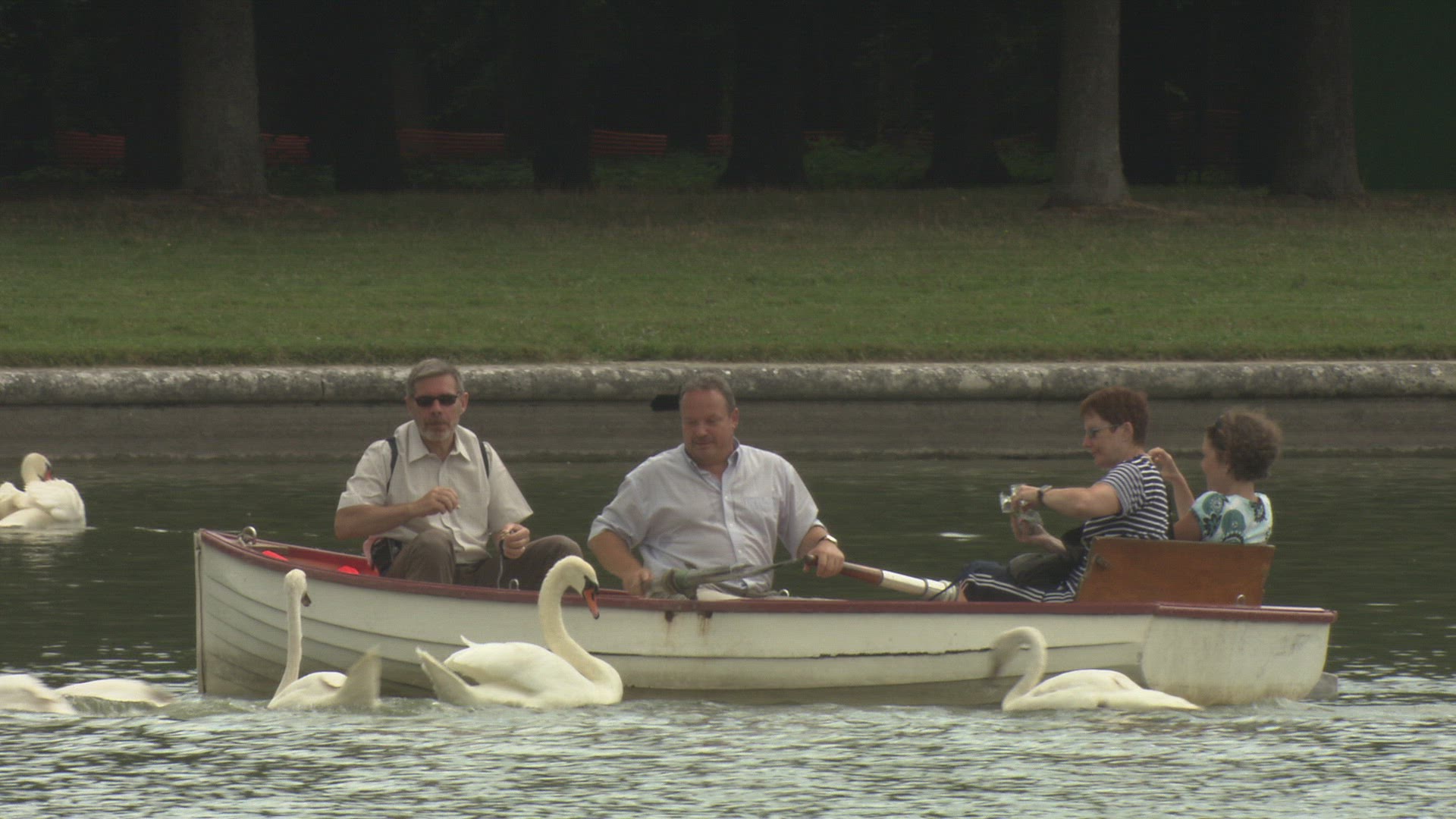 > 1975: woman feeding the geese down by the lake. DENMARK