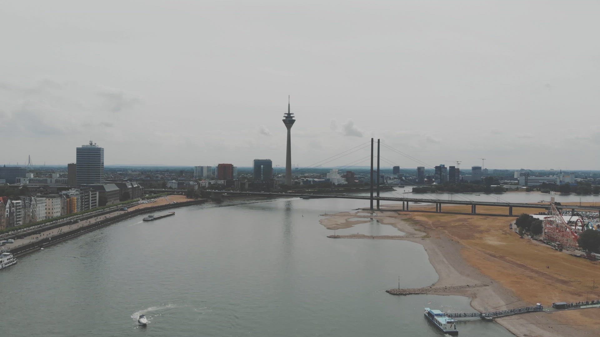 > 1975: the steeple of a church high up in the sky on the shore of a lake STOCKHOLM