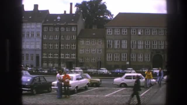 1975: town full of buildings with different faces and many vehicles all around COPENHAGEN