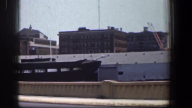 > 1961: driving on a highway through an industrial area. BALTIMORE MARYLAND