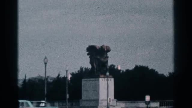 > 1959: view of a large statue while cars drive by. ROME