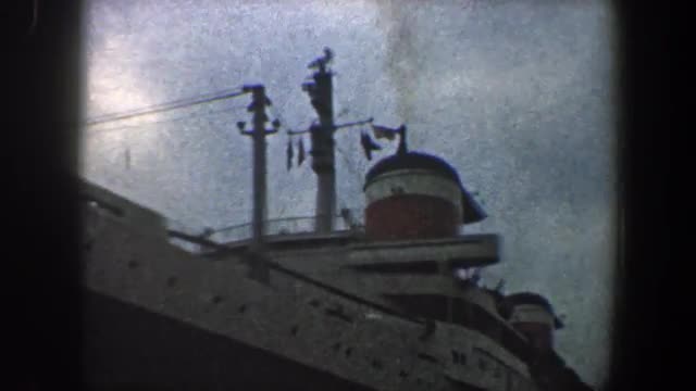 > 1960: viewing of a very large boat and it's people on board. NEW YORK CITY