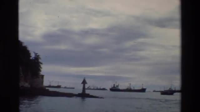 1959: large ship anchored in the water along the shore of sea PISA
