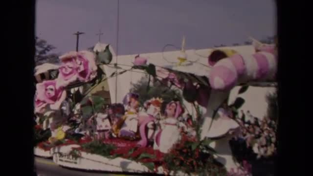 > 1951: horses and people walking in a street parade with an audience TEXAS