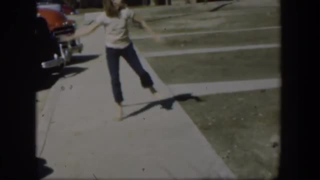 > 1954: girl outside on the sidewalk dancing. NEVADA