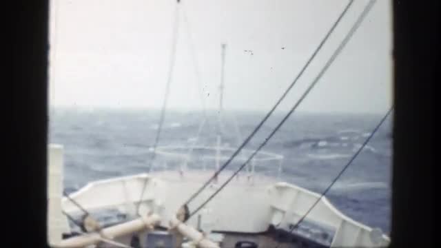 > 1948: merchant ship traveling over rough seas. NEW YORK