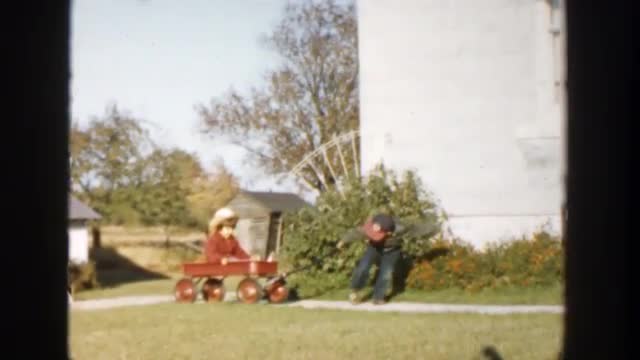 > 1958: a child pulling another child on a wagon MICHIGAN
