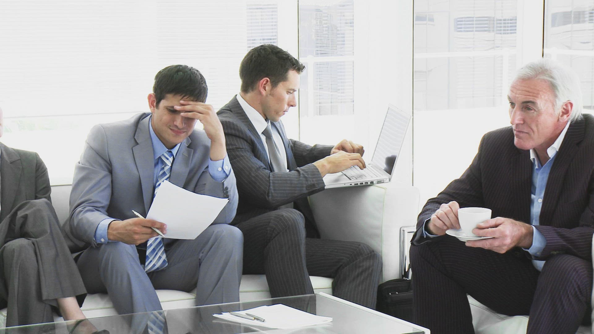 Co-Workers Talking While Waiting For Their Colleague Outside The Office
