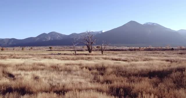 > Outcropping of trees in grassy field, Taos, New Mexico, United States