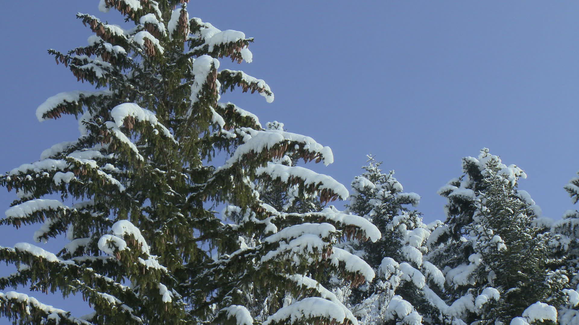 Forest of Huge Fluffy Spruces. Branches of an Evergreen Trees Covered With Snow.