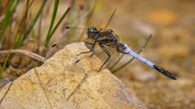 1020840 - Black-tailed skimmer (Orthetrum cancellatum) perched on rock