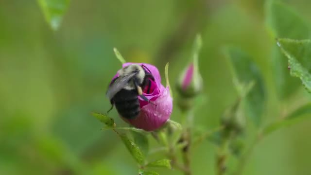 Orange wasp feeding on mint flower, bee & fly flyby, high speed