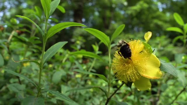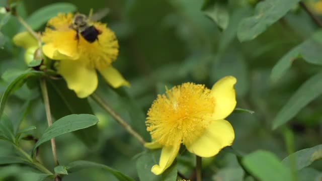 662720 - Hummingbird moth on monarda, wide shot with bumblebees present