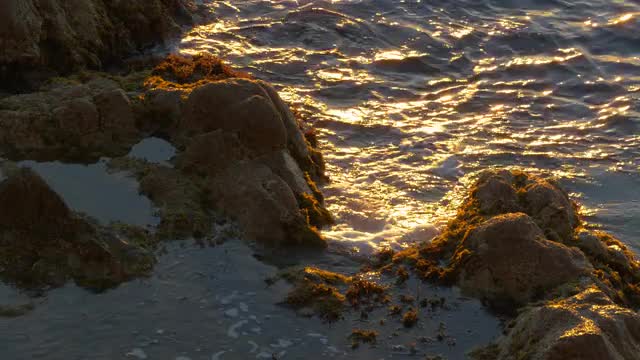 > Oregon Coast beach sunset in Summer. Where the forest meets the ocean in slow-motion