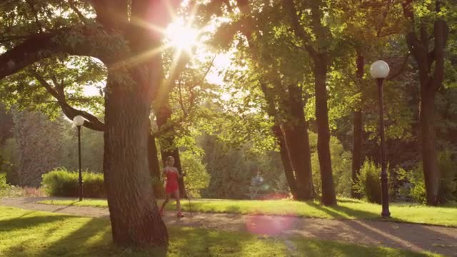 Man in Sports Clothing Walking Along the Asphalt Path
