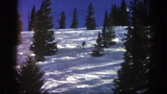 1961: skier skiing down a moderate slope in between conifers ASPEN COLORADO