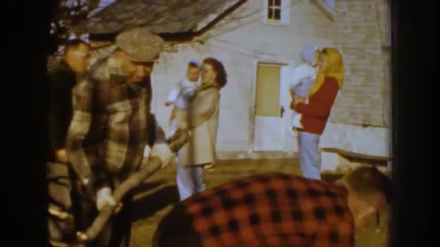 1959: a group of people of all ages collect and stack wood in a yard NEBRASKA