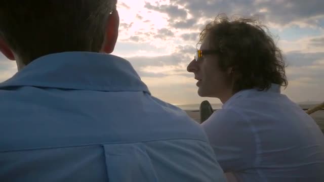 > 1959: family talking and watching father figure load car with chopped wood with cute closeup of todd