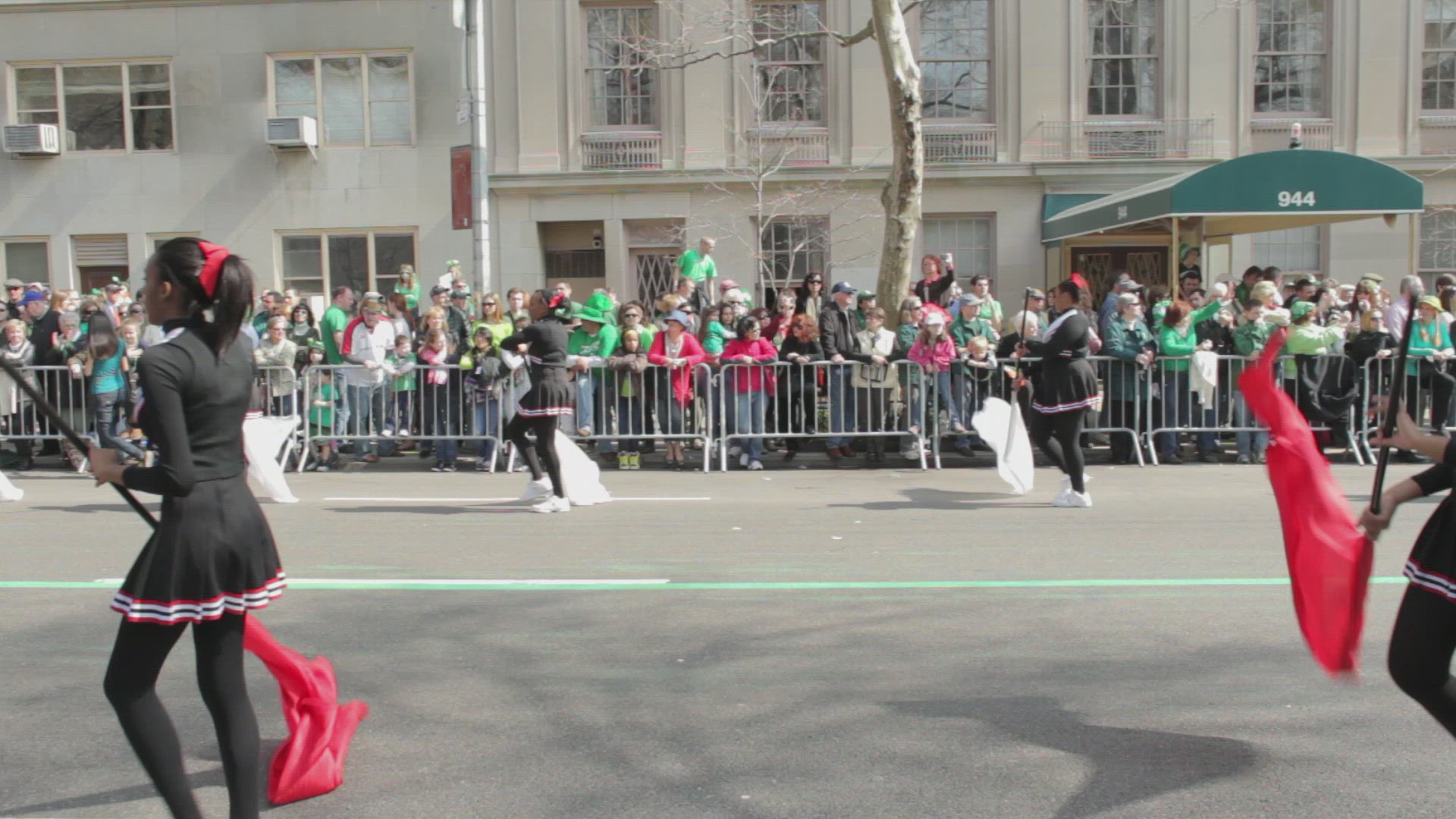 > 1952: people watching parade as it makes its way down a major city street. CALIFORNIA