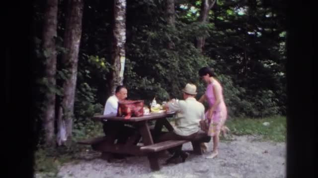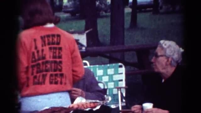 > 1955: a group of friends or family enjoying a picnic lunch and smoking outdoors NEBRASKA