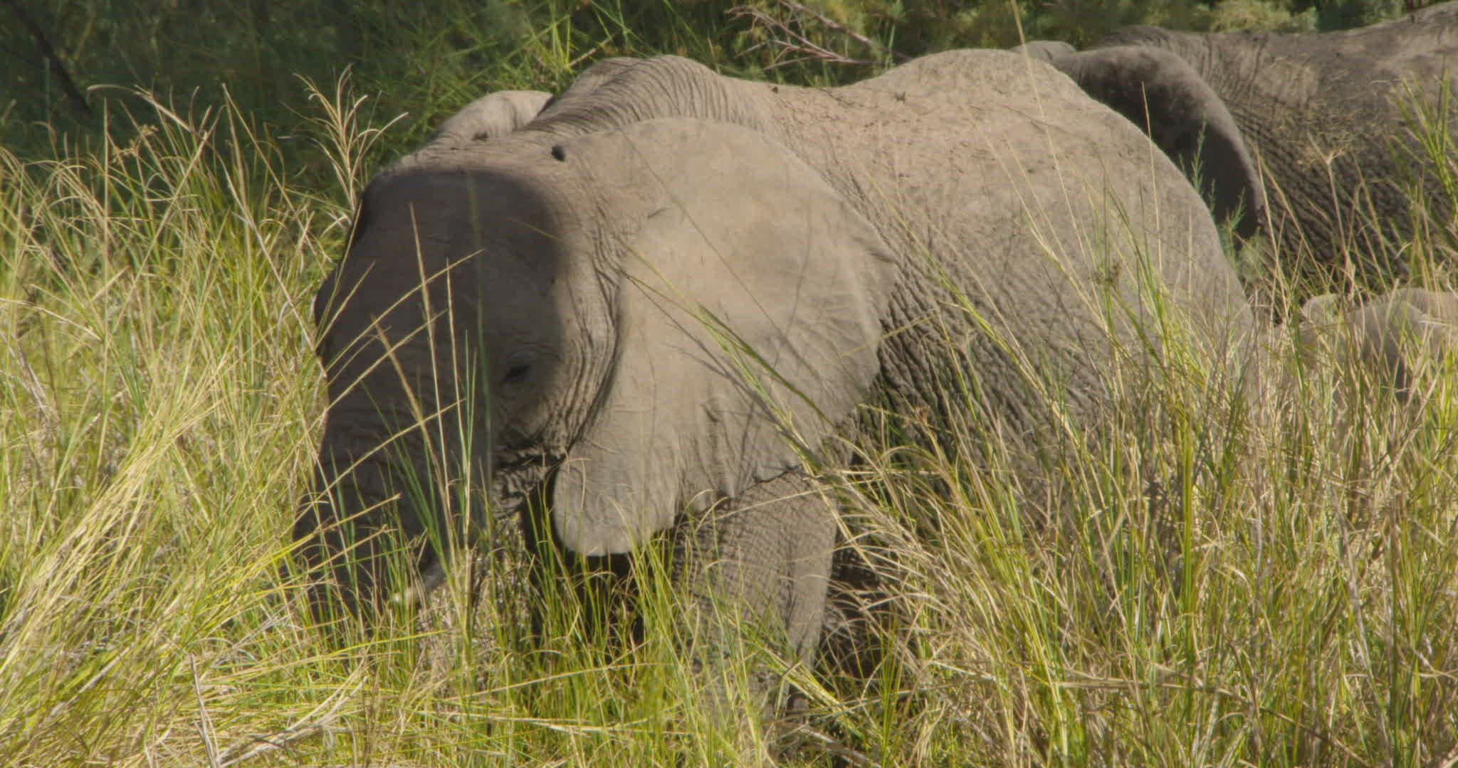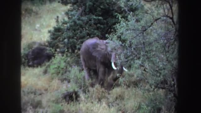 > 1969: african elephant feeding on the grass SOUTH AFRICA