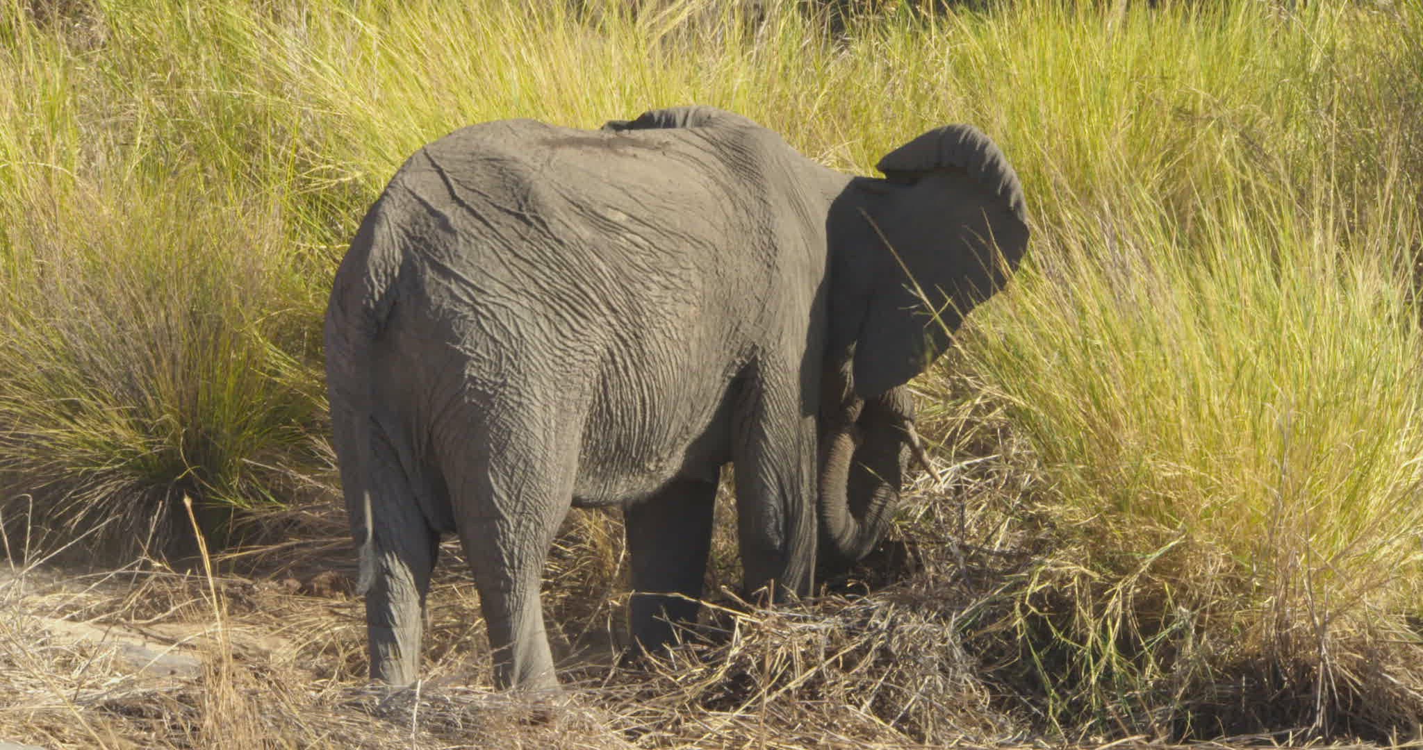 1969: african elephant feeding on the grass SOUTH AFRICA