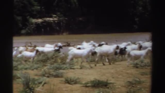 > 1969: group of camels gathered in the river bank and some drinking water. SUDAN